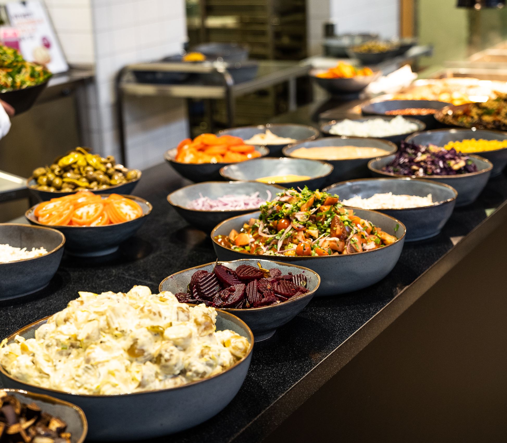 Vårt hyggelige spiseri kan friste med vår innholdsrike buffet hvor du selv setter sammen salat, varmmat, brød og pålegg etter eget ønske og betaler på vekt. I tillegg tilbyr vi smurte produkter, wraps, gode kaffedrikker og et bredt utvalg av kald drikke og meierivarer.